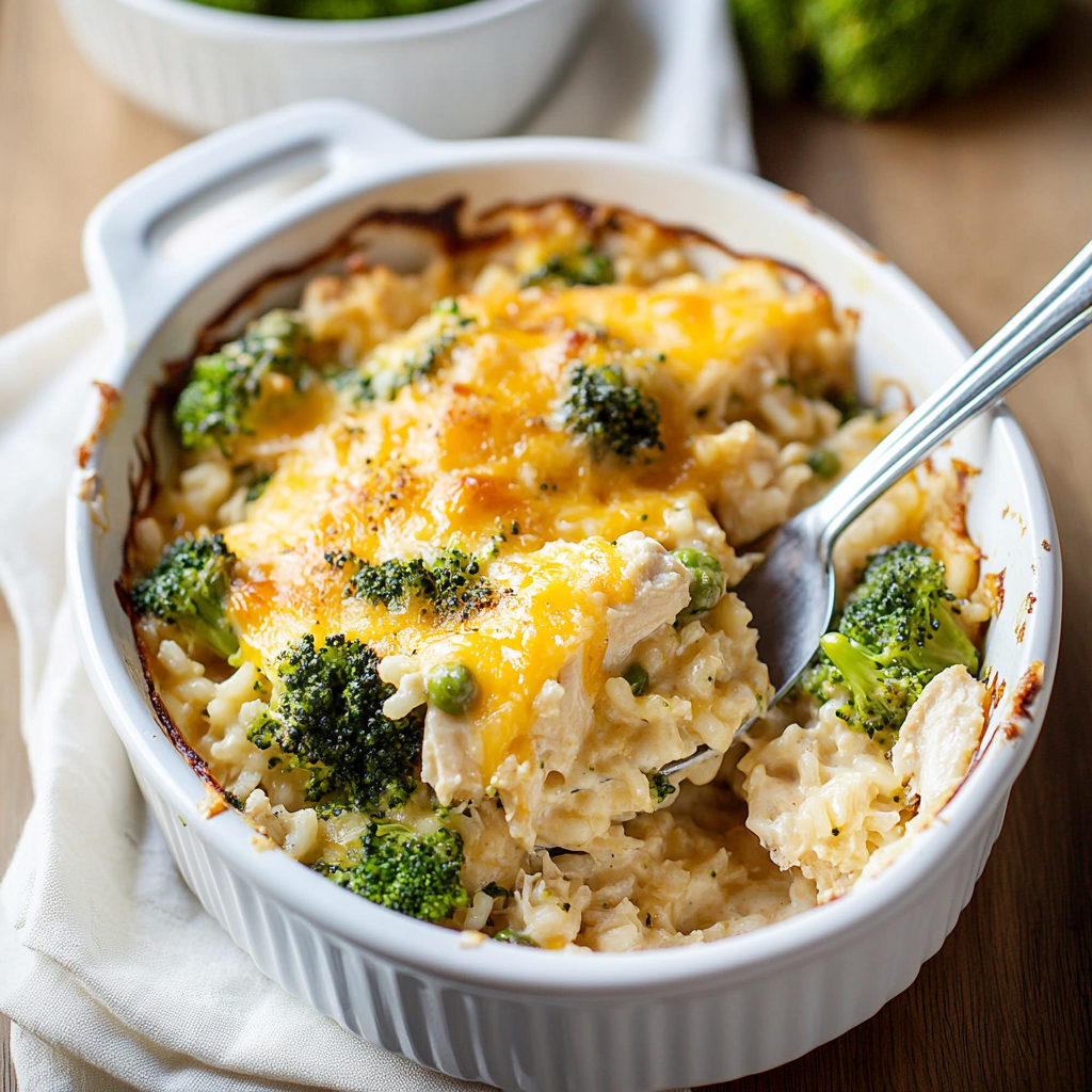 Cheesy Chicken Broccoli Rice Casserole is a comforting, family-friendly dish that combines tender chicken, vibrant broccoli, and fluffy rice in a creamy cheese sauce. Perfect for busy weeknights, this easy-to-make casserole is sure to please even the pickiest eaters. With its rich flavors and satisfying textures, it’s a delightful addition to any meal.