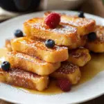 To make the best french toast sticks, dip the bread in the egg mixture thoroughly and cook on medium heat until golden brown. This ensures they’re crispy outside and fluffy inside.