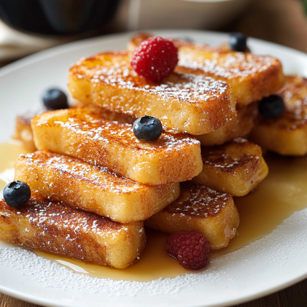 French Toast Sticks are a delightful breakfast treat that will take you back to carefree mornings filled with laughter and syrupy smiles. Golden-brown and crispy on the outside, these fluffy sticks are perfect for dipping in warm maple syrup or your favorite toppings. With their sweet vanilla aroma and satisfying crunch, they make an indulgent start to any day. Easy to prepare and customizable, this recipe is sure to become a family favorite!