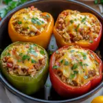 Stuffed peppers with rice are a vibrant and comforting dish that brings joy to any table. These colorful bell peppers are filled with a savory mixture of seasoned ground meat, aromatic spices, and fluffy rice, then topped with melted cheese. Perfect for cozy weeknight dinners or festive gatherings, this recipe allows for customization based on dietary preferences, ensuring everyone can enjoy them.